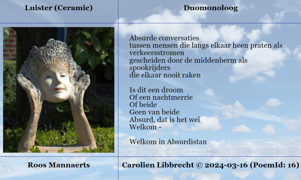 Gedicht in gesprek met het kunstwerk “Luister” van Roos Mannaerts, in het kader van de tentoonstelling The Enchanted Garden 2024.